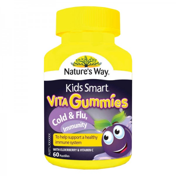 Kids Smart VitaGummies Cold & Flu, Immunity is a great tasting berry flavour pastille (soft gummie). They contain Elderberry, Zinc, Vitamin C + Honey to help boost immunity to help ward off sniffles.